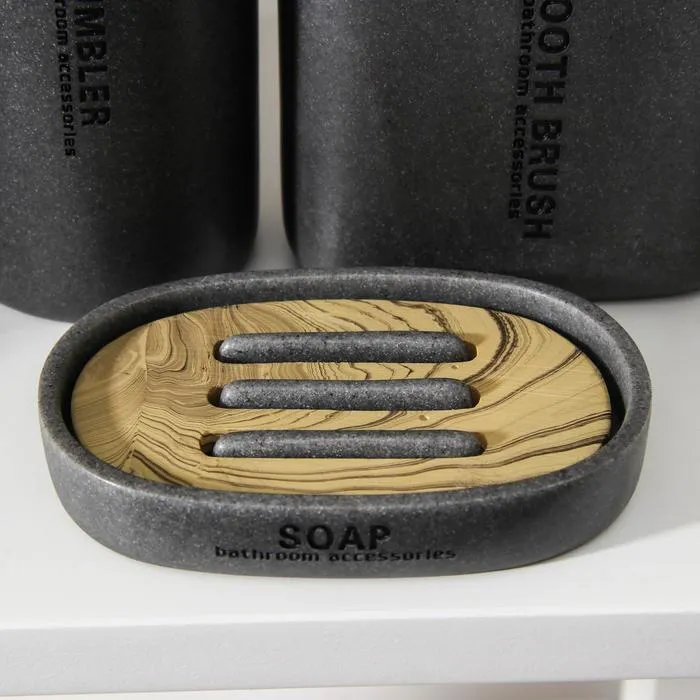 Аксессуары для ванной «Стиль», 4 предмета, дозатор, мыльница, 2 стакана, серые — Характеристики
