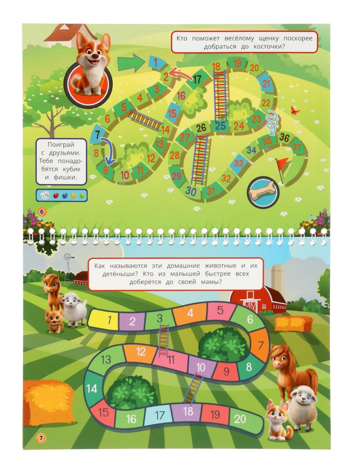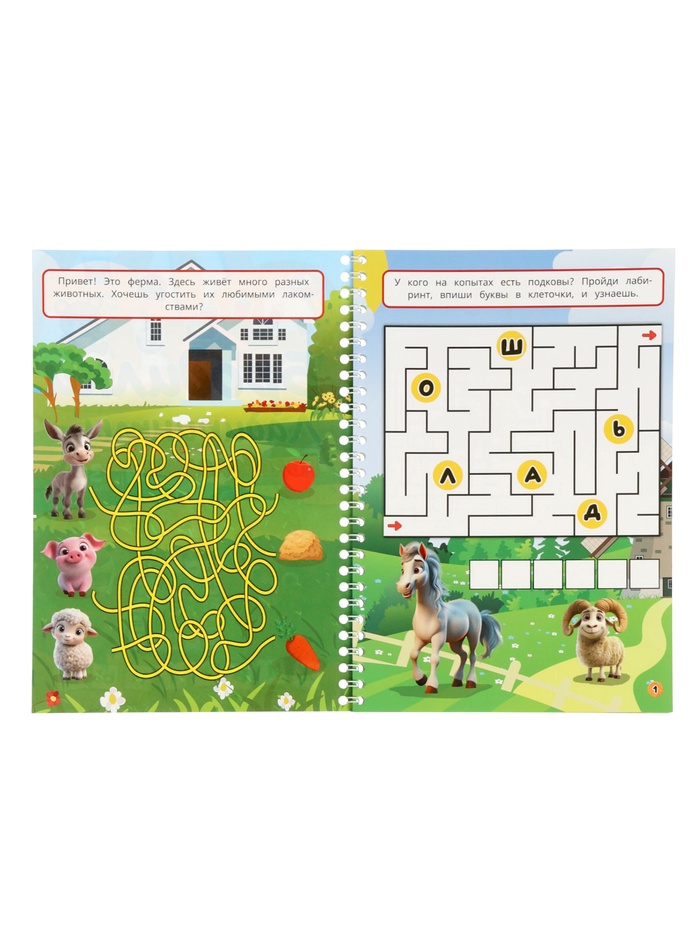 Благодаря пружинному переплёту книга лежит ровно на столе, не захлопывается и не мнётся — идеально для активных малышей. А яркие иллюстрации и разнообразные задания удерживают внимание дольше, чем экран, но без усталости для глаз.