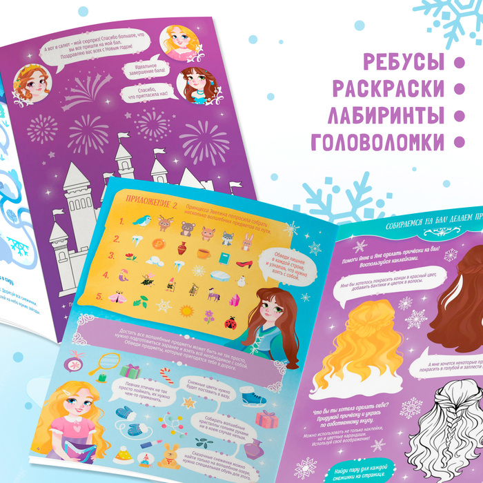 Активити-книга «Новогодний бал» — это волшебное путешествие в мир новогодних чудес для каждой маленькой принцессы!