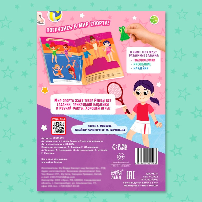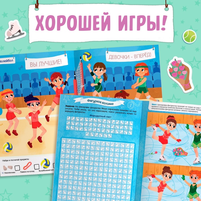 Книга станет отличным подарком для активной и любознательной девочки. Она идеально подойдёт для долгих поездок, отдыха дома или тематических вечеринок. Это увлекательное занятие, которое обязательно понравится любительницам спорта.