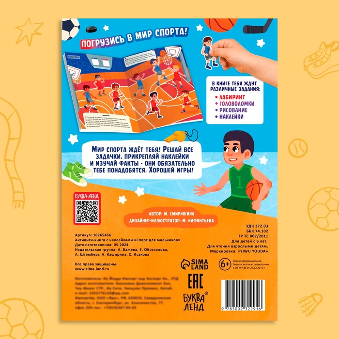 Активити - книга с наклейками «Спорт для мальчиков», 77 наклеек, 6+ — Характеристики
