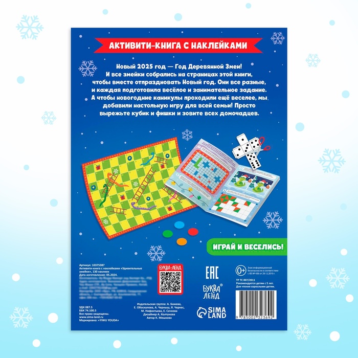 Активити-книга с наклейками «Удивительные змейки», 130 наклеек, плакат - игра — Характеристики