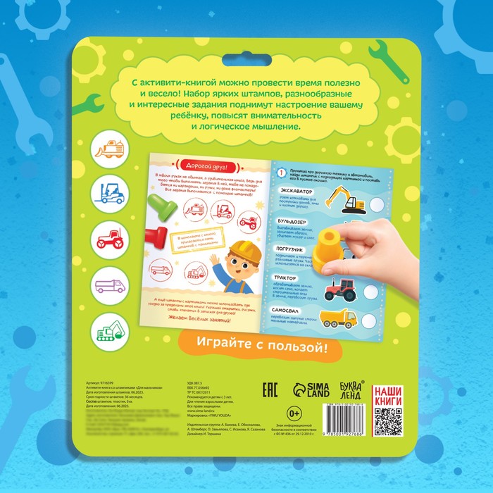 Активити-книга со штампиками «Для мальчиков», 5 штампиков — Характеристики