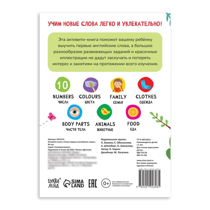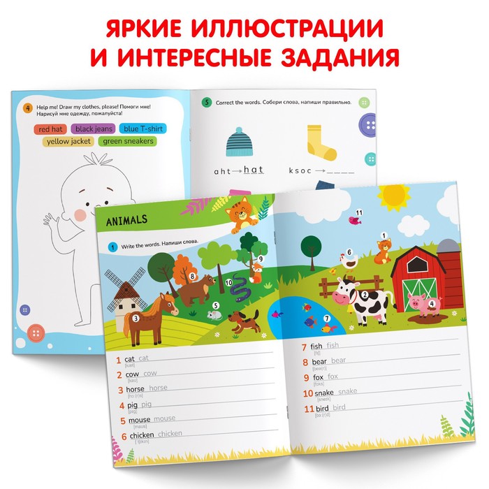 Активити-книга «Учим первые английские слова», 36 стр. — Характеристики
