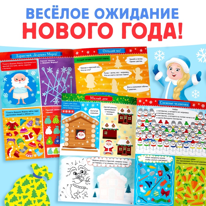 Активити - книжка с наклейками «Игры и задания под Новый год», 20 стр., А4, более 120 стикеров — Характеристики