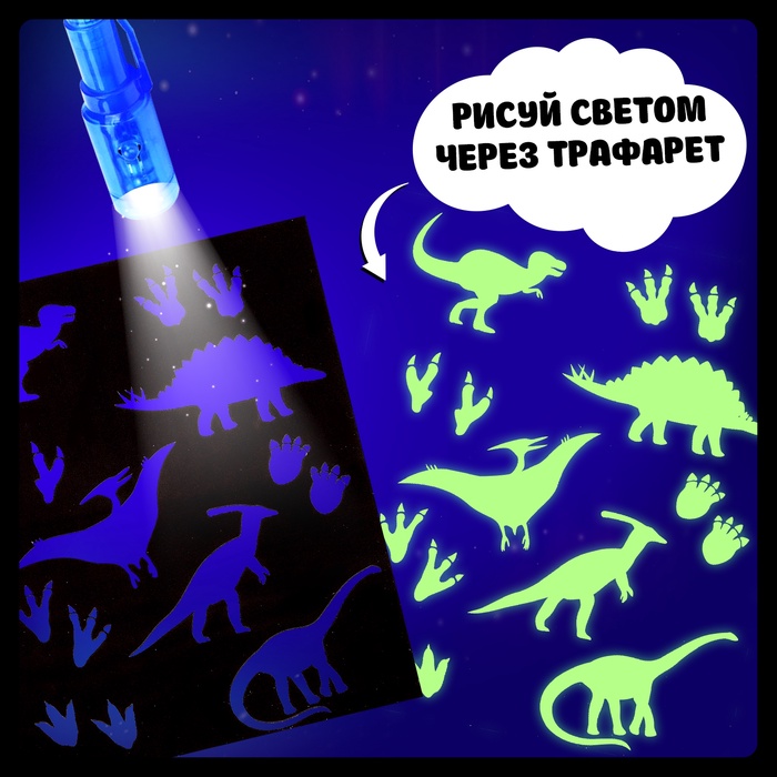 Активити-книжка с рисунками светом «Динозавры», ручка с фонариком и невидимыми чернилами — Характеристики
