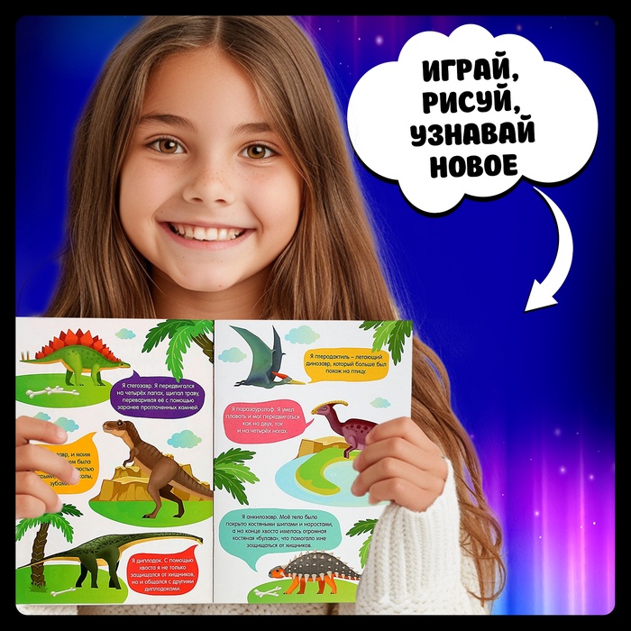 Активити-книга станет отличным подарком для юных исследователей. Захватывающий мир динозавров ждёт своего первооткрывателя!