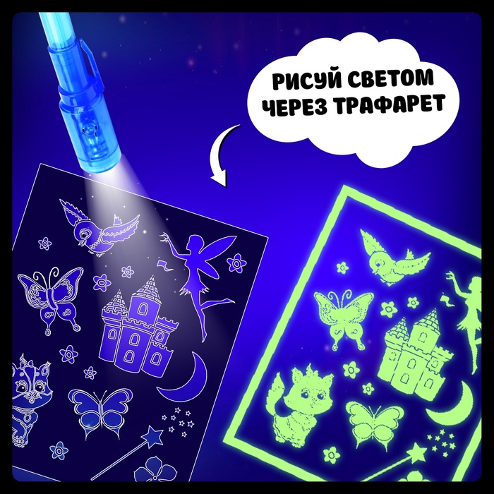 Активити-книжка с рисунками светом «Феечки», ручка с фонариком и невидимыми чернилами — Характеристики