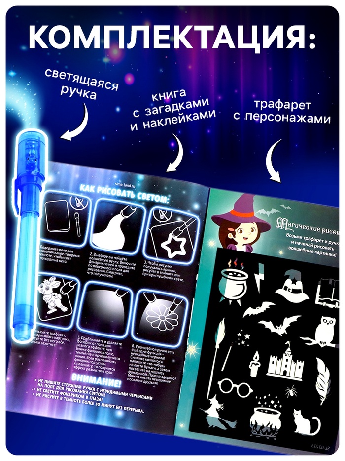 Активити-книжка с рисунками светом «Маленький волшебник», ручка с фонариком и невидимыми чернилами — Характеристики