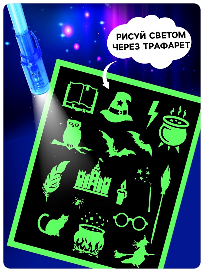 - Ручка с фонариком для рисования и раскрытия секретных картинок.