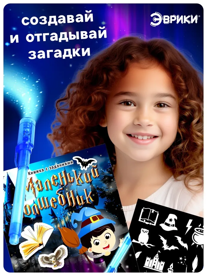 «Маленький волшебник» — это необычная книга-игра, в которой рисунки оживают под светом фонарика. Вместе с ней ребёнок почувствует себя настоящим магом, раскрывая скрытые изображения специальной ручкой с невидимыми чернилами.