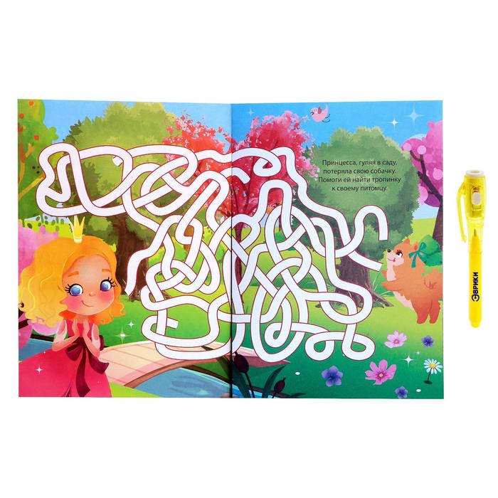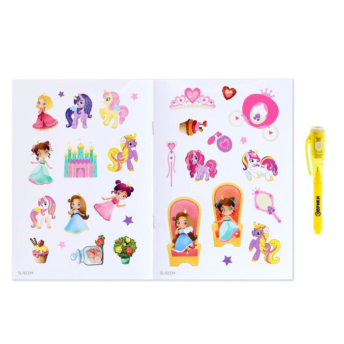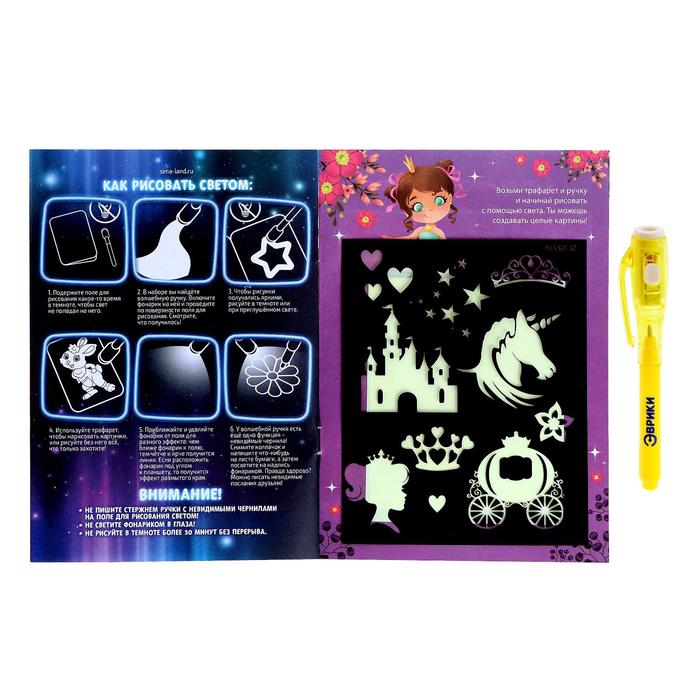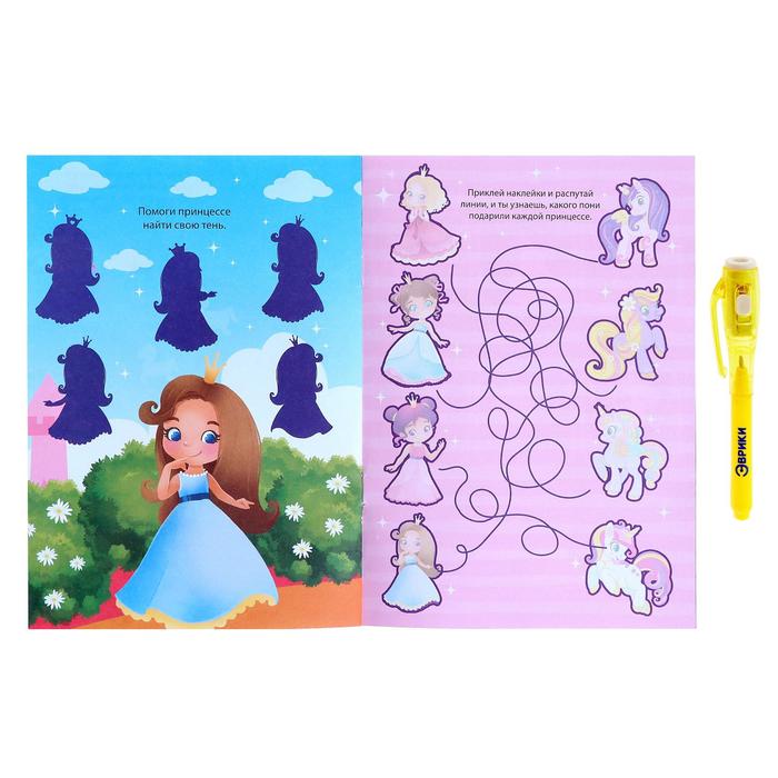 Активити-книжка с рисунками светом «Принцессы», ручка с фонариком и невидимыми чернилами — Характеристики