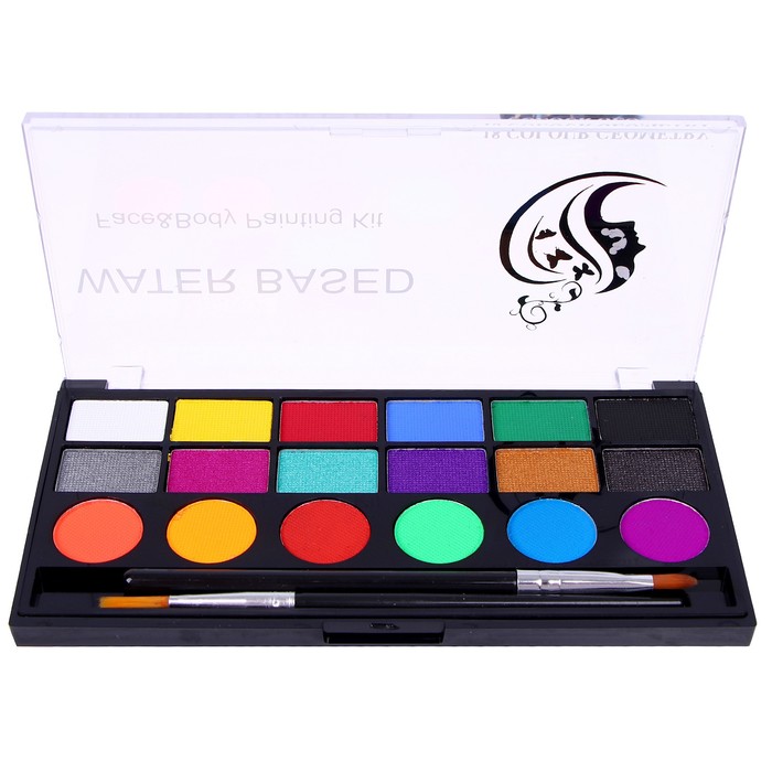 Аквагрим профессиональный для лица и тела, 18 цветов, с 2 кисточками