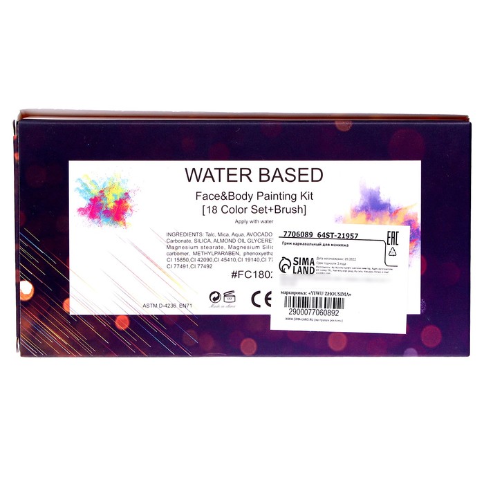 Аквагрим профессиональный для лица и тела, 18 цветов, с 2 кисточками — Характеристики