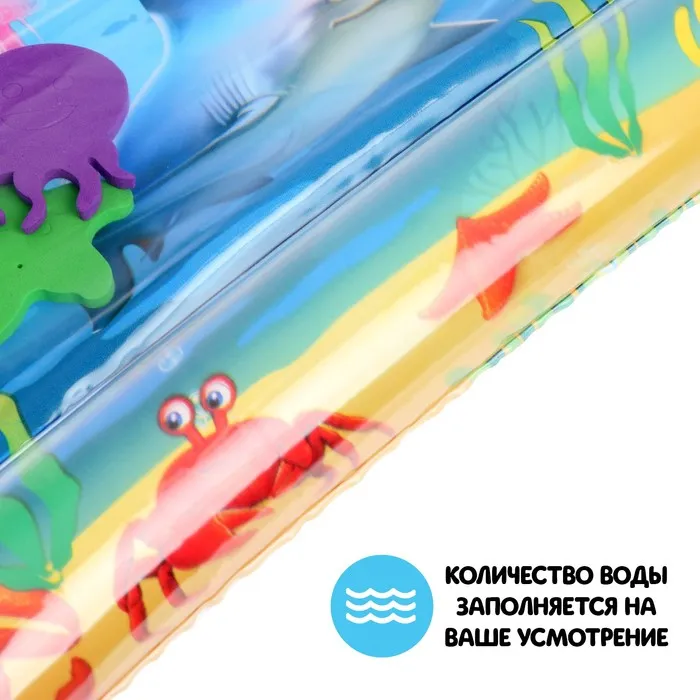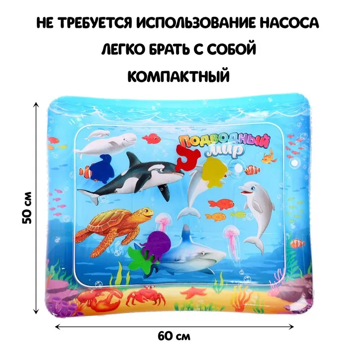 Акваковрик «Подводный мир» надолго увлечёт вашего малыша и разнообразит его досуг. Ребёнку будет интересно наблюдать за фигурками в коврике. Для того чтобы надуть коврик вам не потребуется насос, просто наполните его водой на ваше усмотрение. Акваковрик компактно складывается. Его легко взять с собой на пикник, в гости или в путешествие.