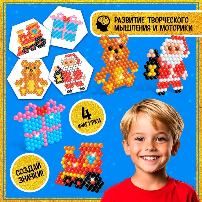 Аквамозаика «Дед Мороз и подарки», значки, 4 фигурки — Характеристики