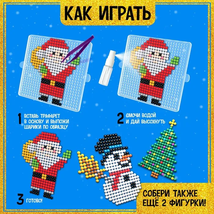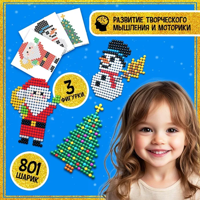Аквамозаика от торговой марки «Эврики» скрасит дни в ожидании Нового года и поможет весело и с пользой провести время. Ребёнок соберёт объёмные фигурки из шариков-пикселей, потренирует мелкую моторику и внимание.