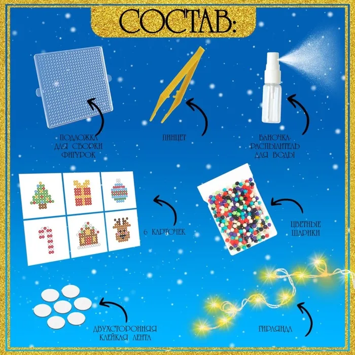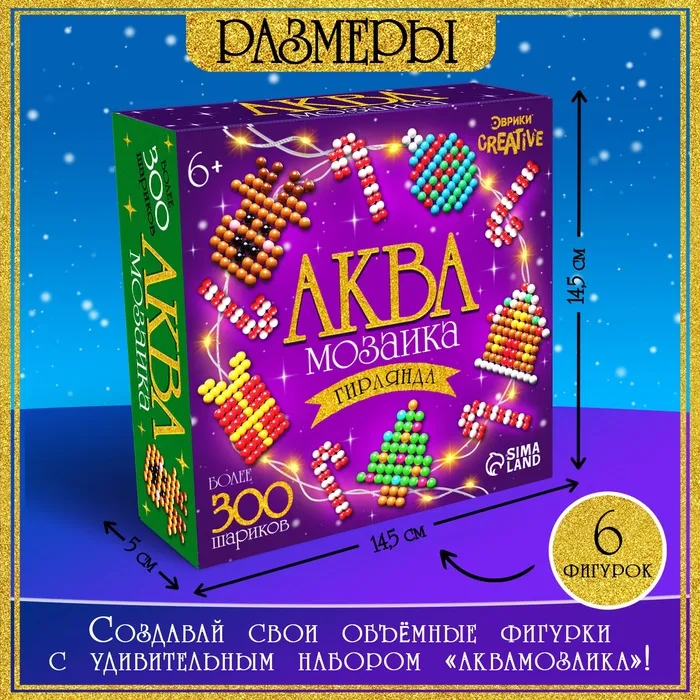 Аквамозаика детская «Новогодняя гирлянда своими руками», 6 фигурок, 400 шариков — Характеристики