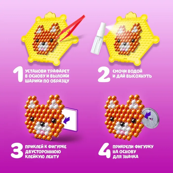 Аквамозаика для детей «Мордочки», 4 мозаики, 267 шариков — Характеристики