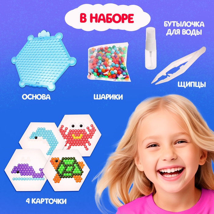 Аквамозаика от торговой марки «Эврики» поможет весело и с пользой провести время. Ребёнок соберёт объёмные фигурки из шариков-пикселей, потренирует мелкую моторику и внимание.