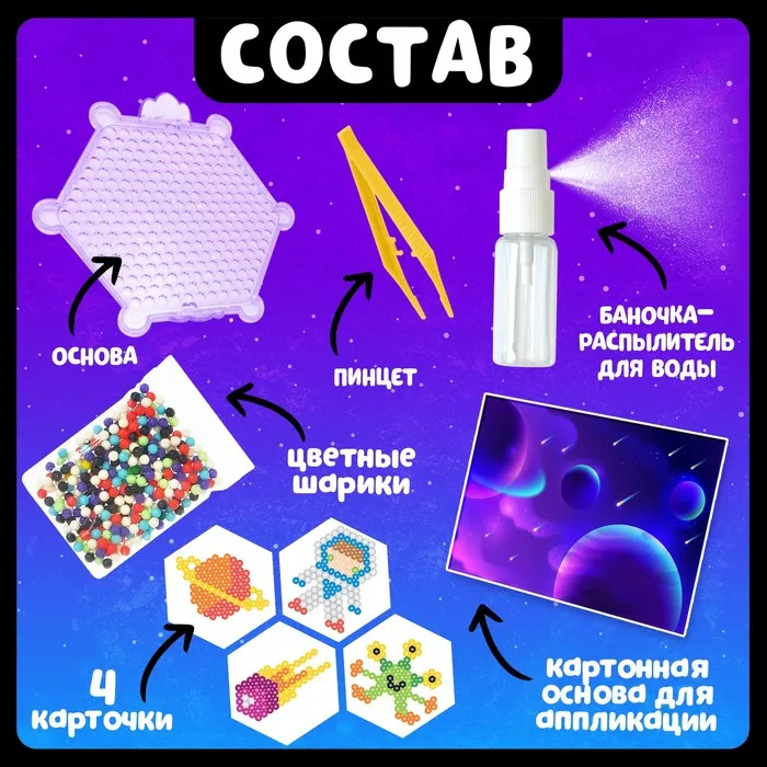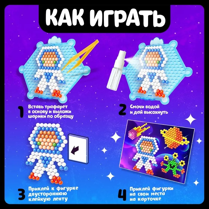 С аквамозаикой от торговой марки «Эврики» ребёнок соберёт 4 объёмные фигурки из шариков-пикселей. Детали плотно скрепляются друг с другом. С поделками можно играть или носить с собой как брелоки.