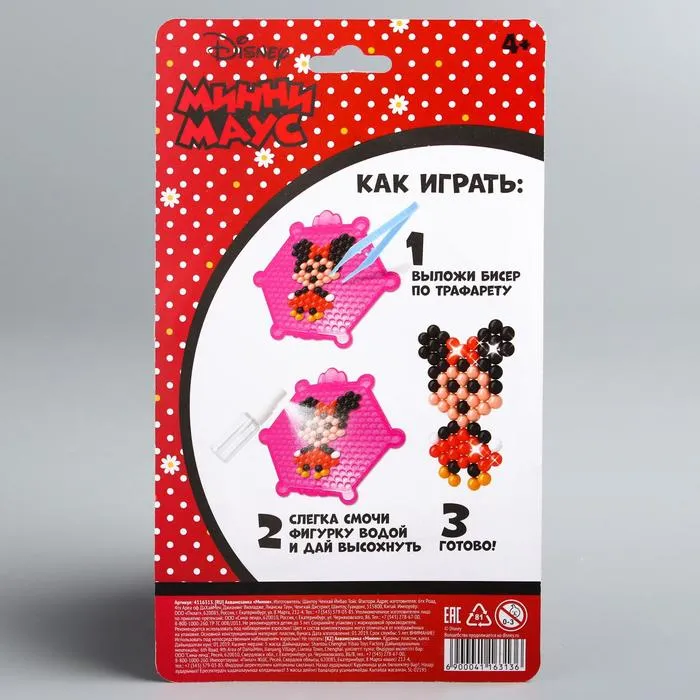 С аквамозаикой «Минни» ребёнок соберёт из шариков-пикселей объёмную фигурку с персонажем из популярного мультфильма «Минни Маус». С поделкой можно играть или украсить интерьер.