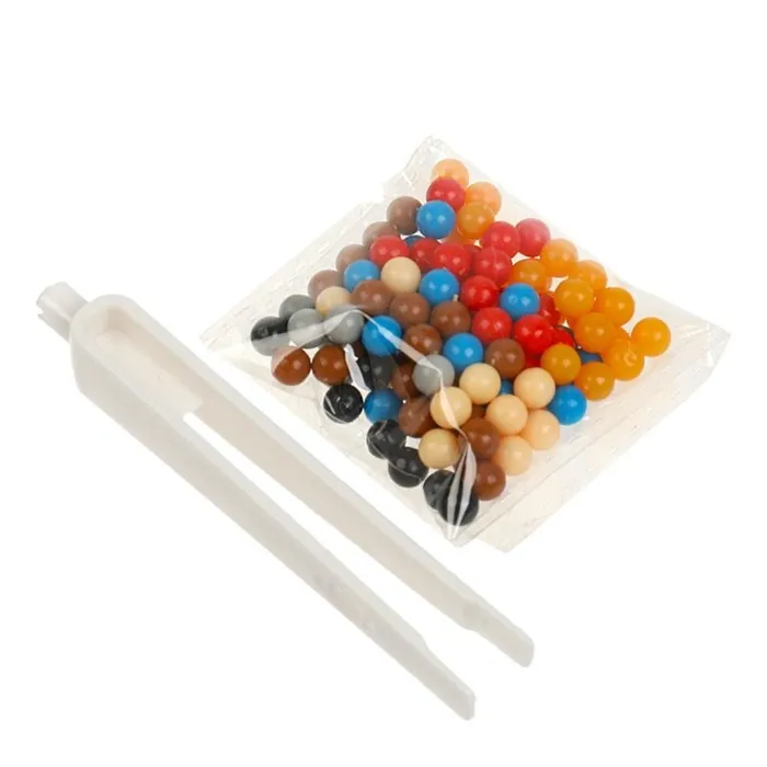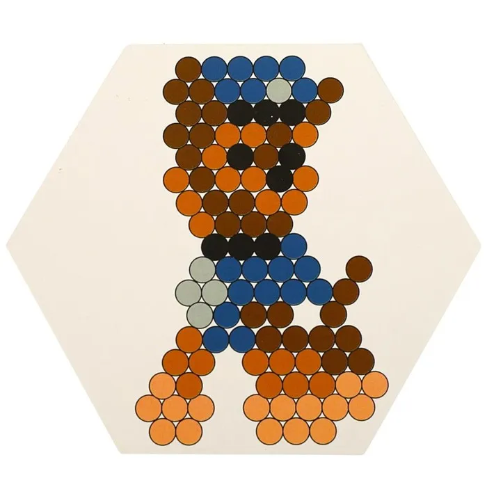 - Поместите карточку с рисунком под пластиковую основу так, чтобы нарисованные бусины совпадали с углублениями на прозрачной основе.