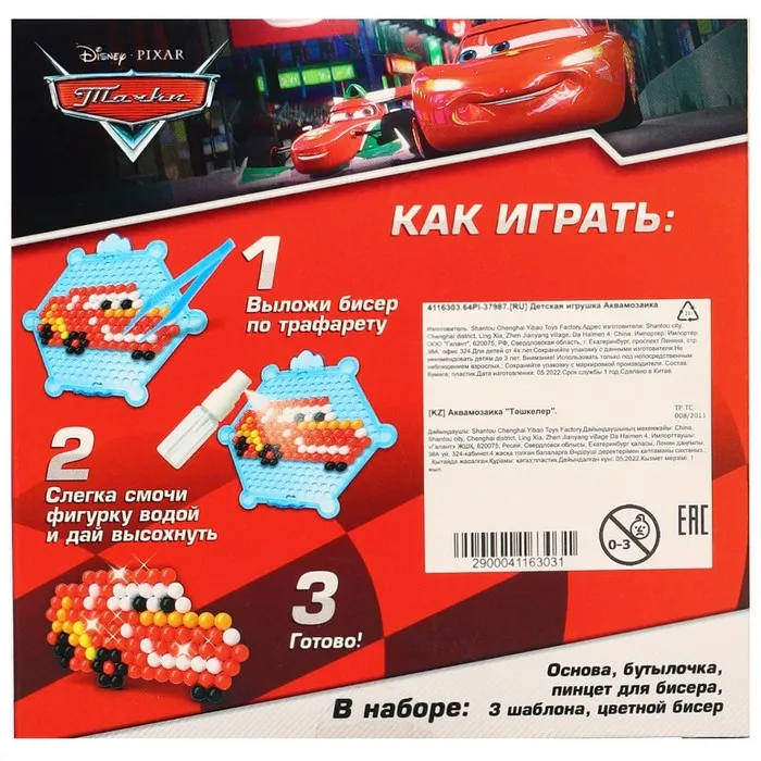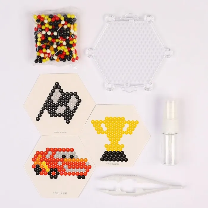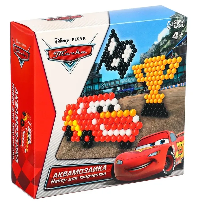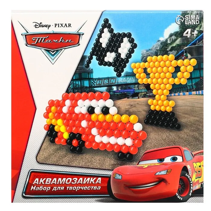 С аквамозаикой «Молния и кубок» ребёнок соберёт из шариков-пикселей 3 объёмных фигурки из популярного мультфильма «Тачки». С поделками можно играть или украсить интерьер.