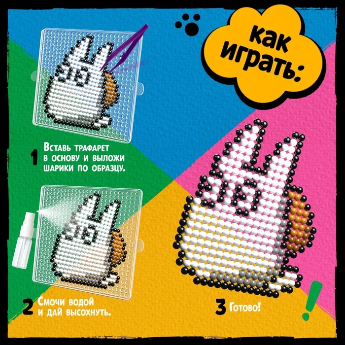 С аквамозаикой «Тоторо» ребёнок соберёт 4 объёмные фигурки из шариков-пикселей. Детали плотно скрепляются друг с другом. С поделками можно играть или украсить интерьер.