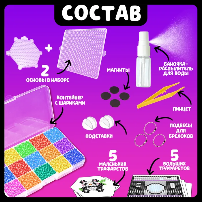 Аквамозаика в контейнере, 2350 шариков, 10 трафаретов, 2 основы — Характеристики