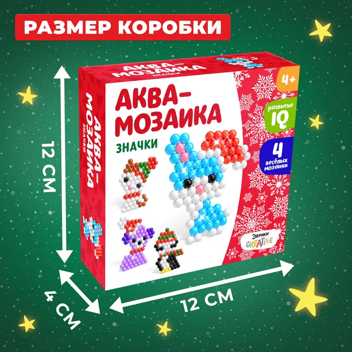 С аквамозаикой от торговой марки «Эврики» ребёнок соберёт объёмные фигурку из цветных бусинок. Детали плотно скрепляются друг с другом. Из бисера можно сделать праздничные значки.