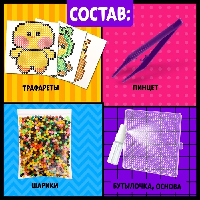 Аквамозаика «Зверята», более 1000 шариков, 3 фигурки — Характеристики
