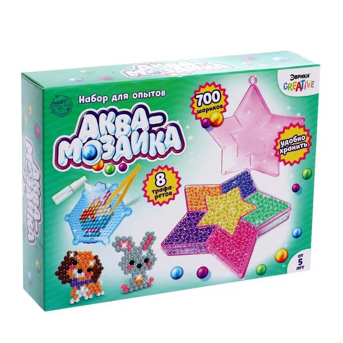 С аквамозаикой от торговой марки «Эврики» ребёнок соберёт 8 объёмных фигурок из шариков-пикселей. Детали плотно скрепляются друг с другом. С поделками можно играть или носить с собой как брелоки.