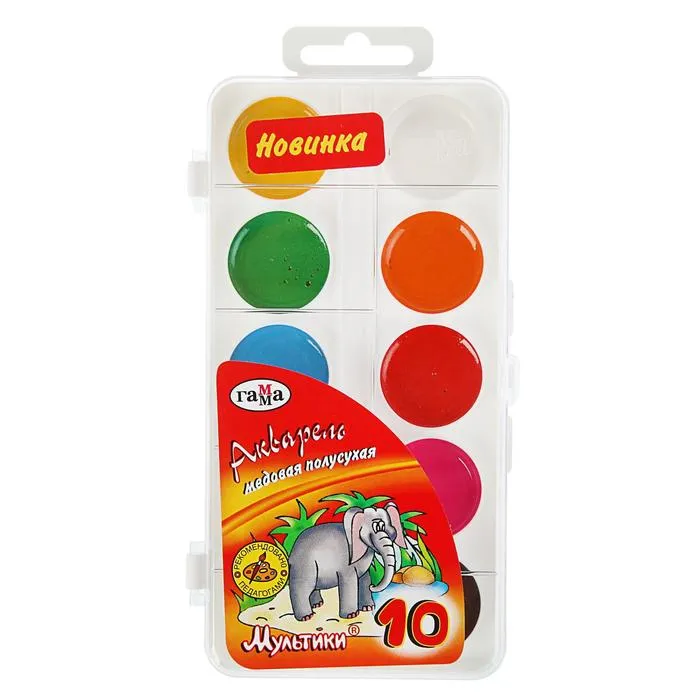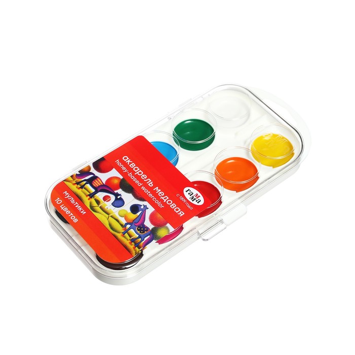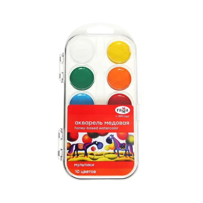 Акварель 10 цветов «Гамма» «Мультики», в пластиковой коробке, без кисти — Характеристики