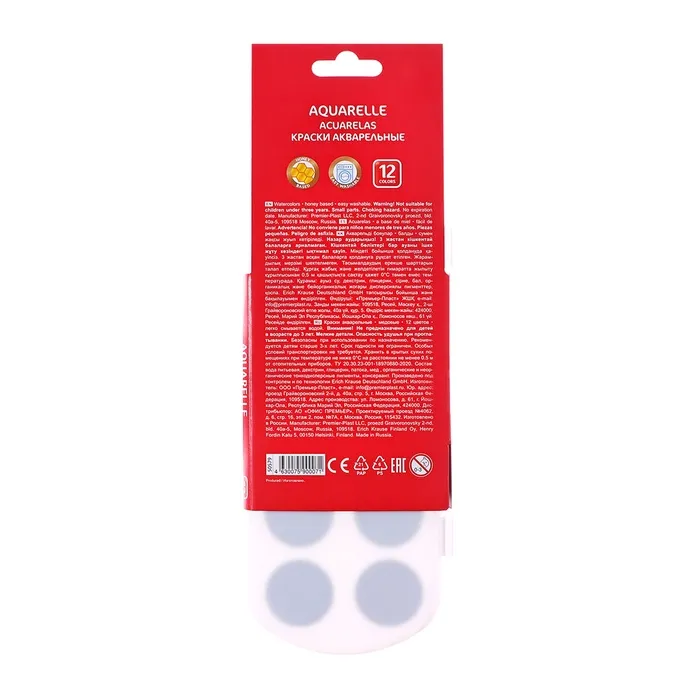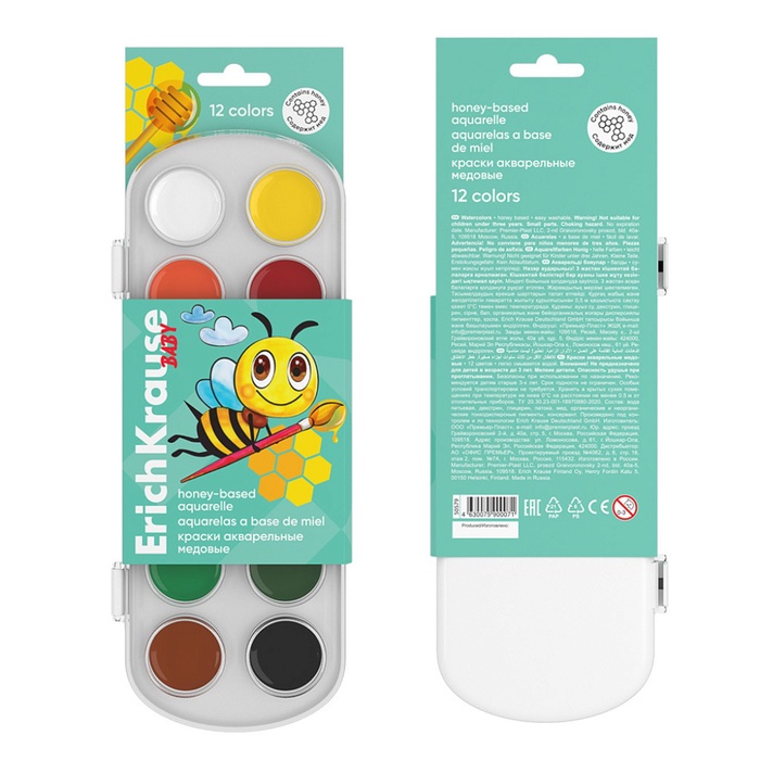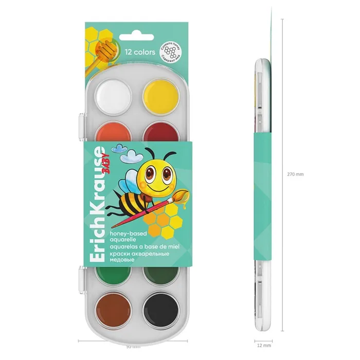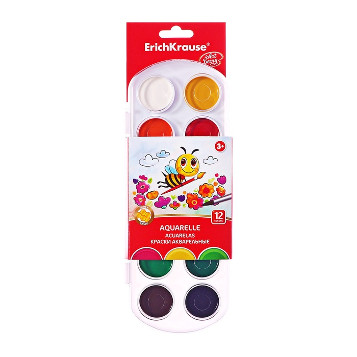 Акварель 12 цветов, ErichKrause ArtBerry, медовая, без кисти, пластиковая коробка, европодвес — Характеристики