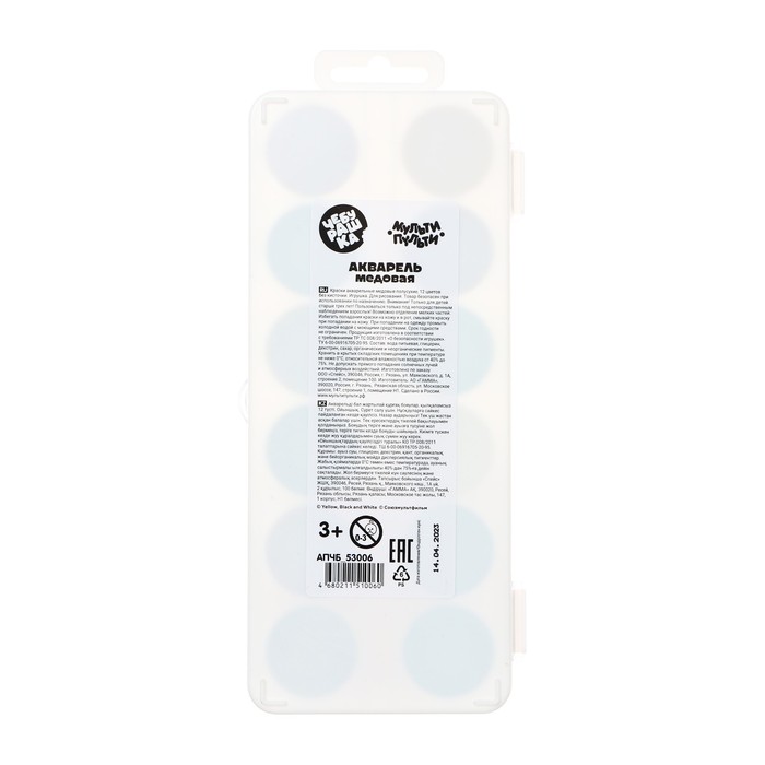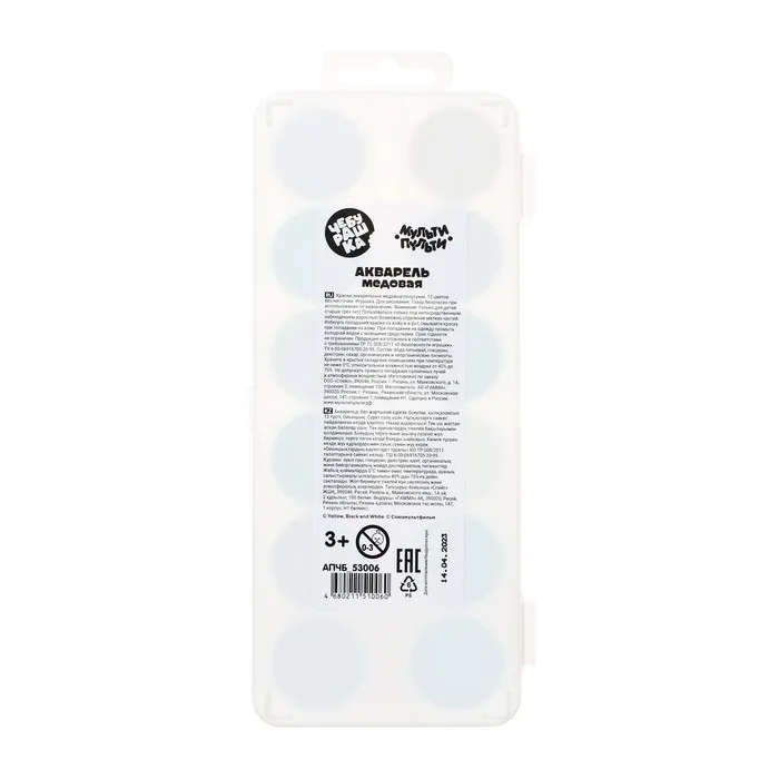 Краски "Мульти-Пульти" серии "Чебурашка" обладают хорошей укрывистостью и остаются яркими при высыхании. Акварель предназначена для детей старше 3-х лет и годится для работы в школе или в детском саду. Смешивание акварели "Мульти-Пульти" дает чистые оттенки. Натуральные компоненты делают ее безопасной для здоровья детей. Пластиковая упаковка акварели удобна в использовании, а наклейка на упаковке с любимым героем - Чебурашкой делает набор красок более интересным и запоминающимся. Яркие краски 6 цветов разделены надёжными кюветами, благодаря которым цвета не смешаются при работе.