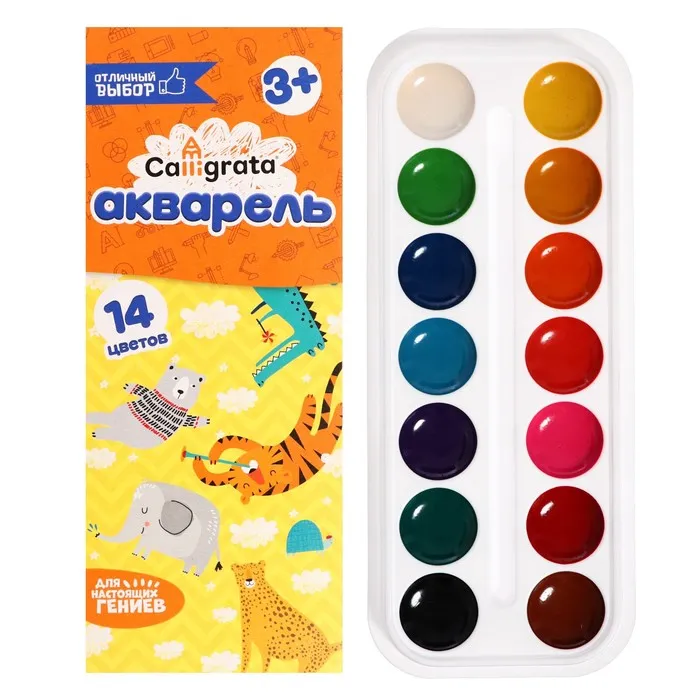 Раскройте мир красок с акварелью Calligrata! Набор акварельных красок, 14 цветов – это компактное и практичное решение для творчества. Краски упакованы в картонный пенал с мягким пластиковым покрытием, что делает их удобными для хранения и транспортировки.