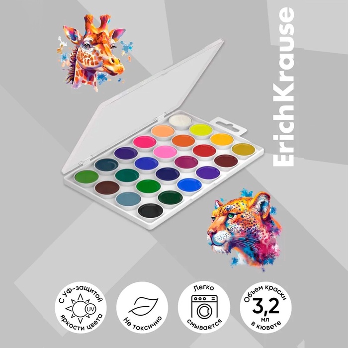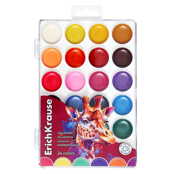 Акварельные краски ErichKrause с УФ защитой яркости. Актуальные цвета с яркой палитрой легко смешиваются и сочетаются между собой, равномерно ложатся на бумагу, обладают улучшенной цветопередачей и не выгорают на солнце благодаря УФ защите. Яркий эксклюзивный авторский дизайн выполнен в акварельной технике и нанесен на упаковку по технологии термопечати, не имеющей аналогов в России среди других производителей красок. Эта технология дает уверенность в оригинальности товара и защищает от подделок.