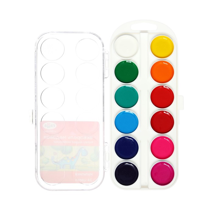 Акварель 24 цвета, «Гамма» «Мультики», без кисти, в пластиковой коробке — Характеристики