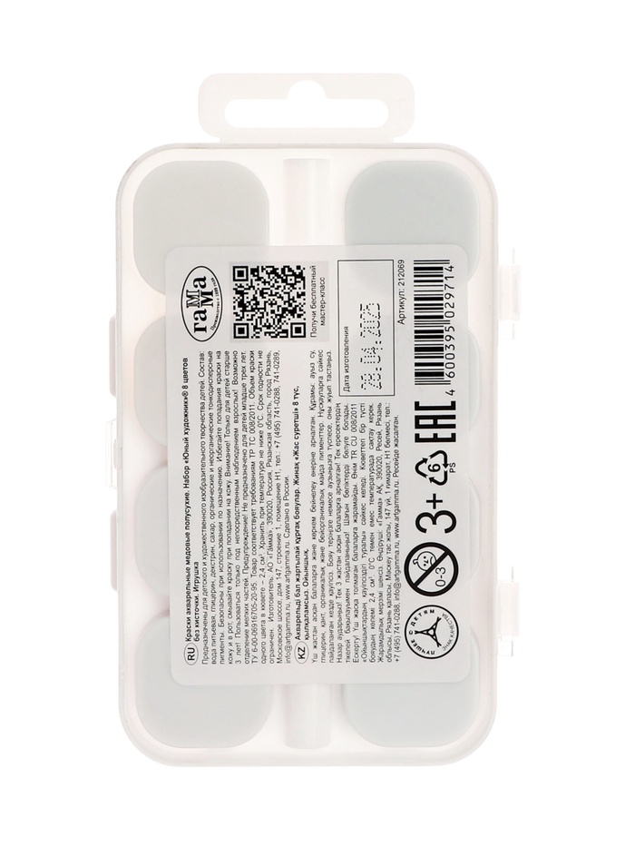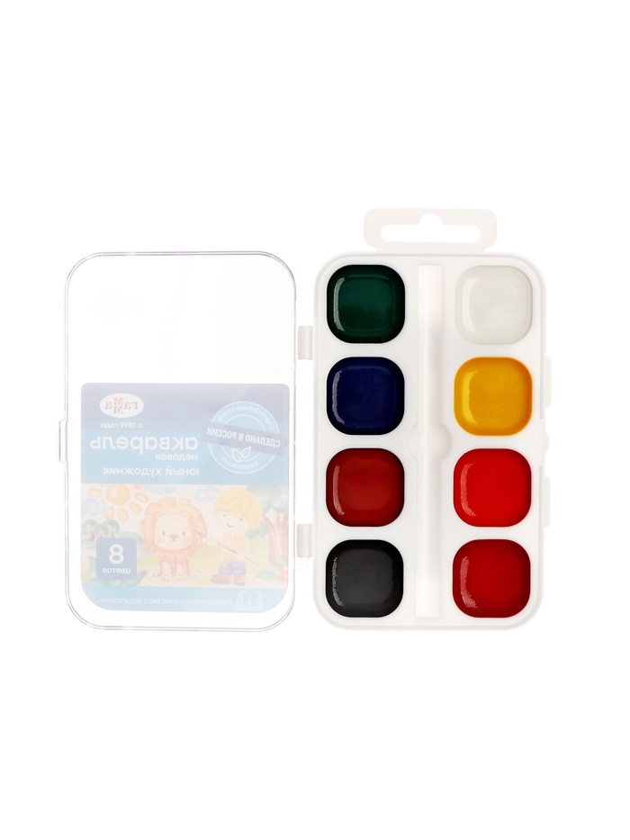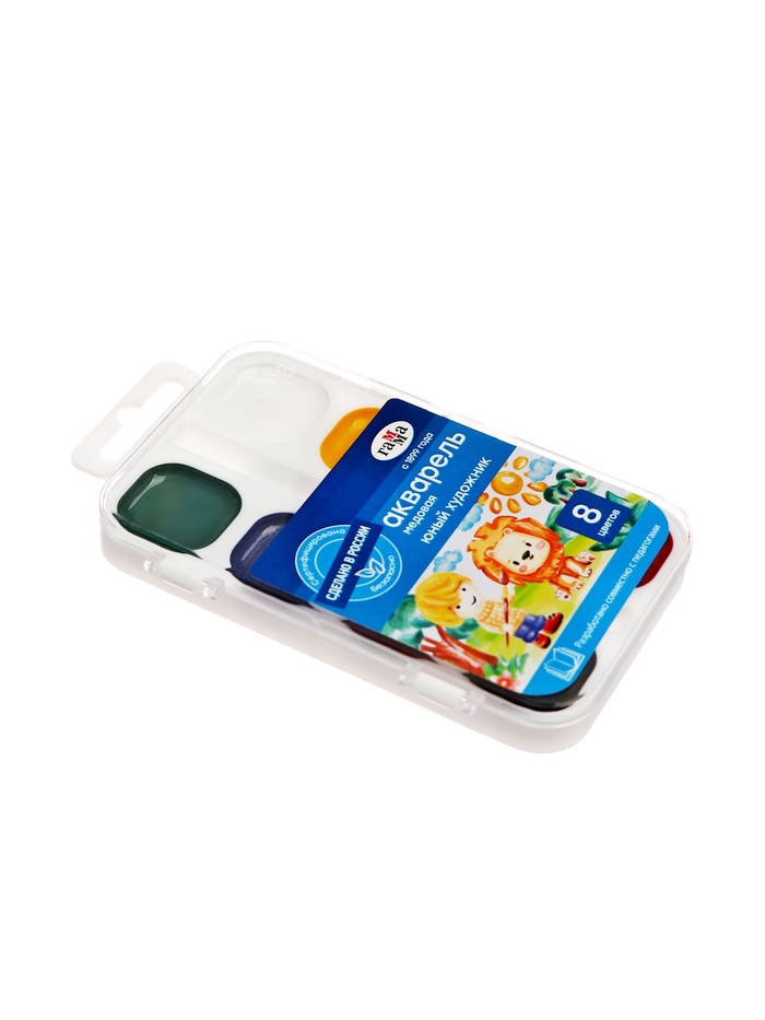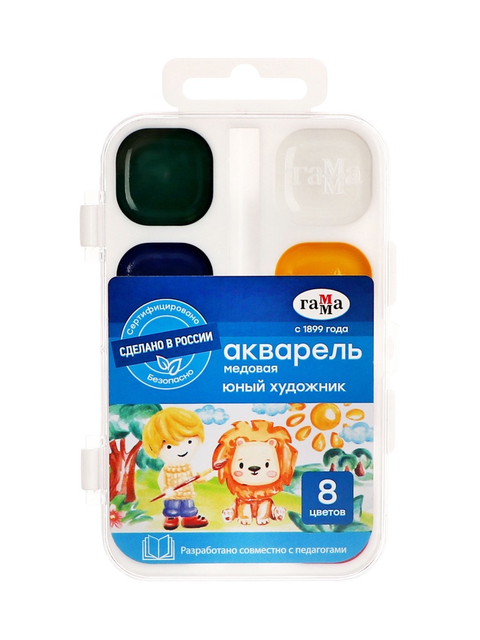 Акварель 8 цветов Гамма «Юный художник», медовая, без кисти, пластик — Характеристики