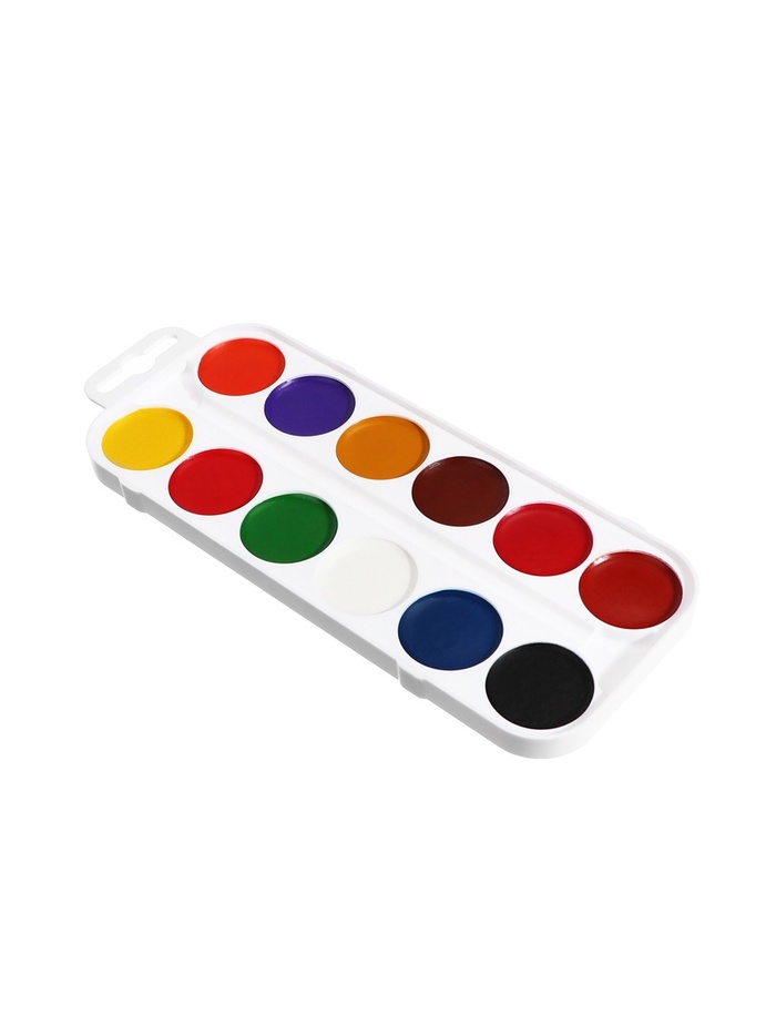 Набор акварельных красок в картонной упаковке. Включает 12 насыщенных цветов, подходит для творчества, обучения и художественных экспериментов. Удобный формат и качественная пигментация делают набор универсальным выбором для детей и взрослых.