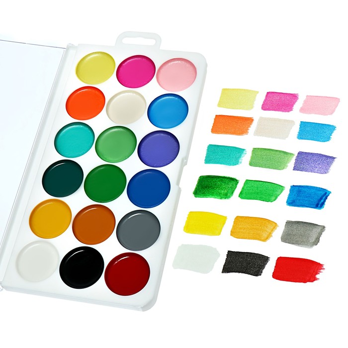Набор акварельных красок, 18 цветов – это уникальное сочетание классических и перламутровых оттенков в одной палитре. Краски упакованы в пластиковую упаковку с европодвесом, что делает их удобными для хранения и демонстрации.