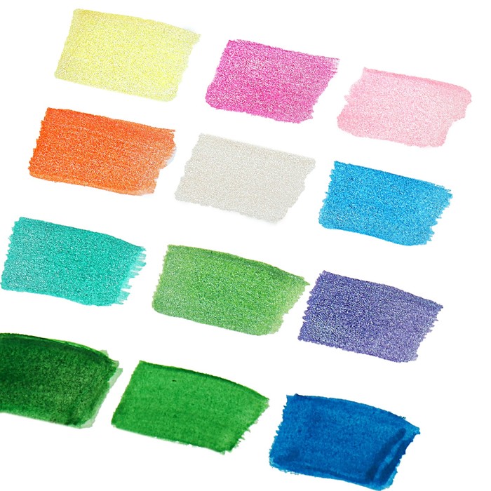 - Перламутровый блеск: Половина цветов в наборе обладает мерцающим эффектом, который добавляет работам объема и изысканности. Краски подходят для декоративных элементов, открыток и иллюстраций.