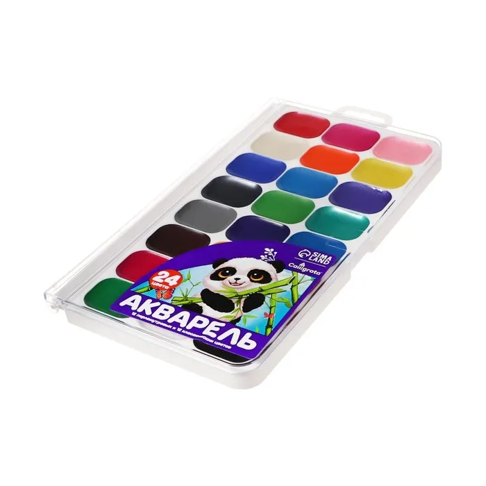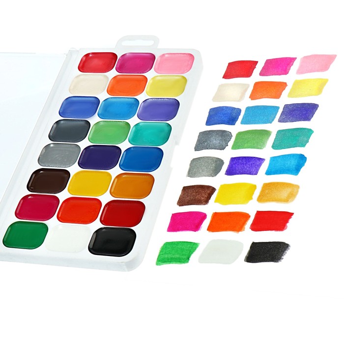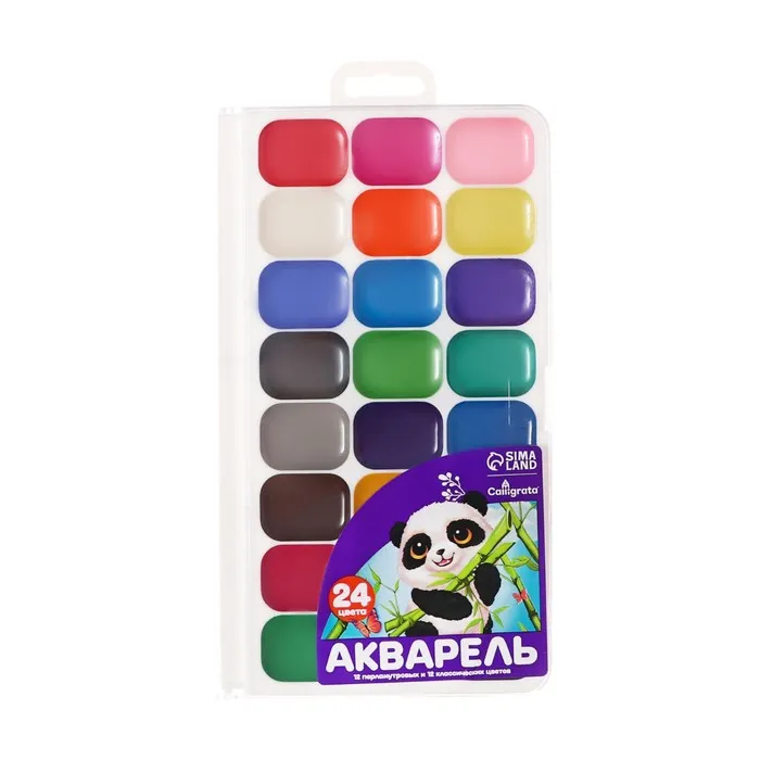 Набор акварельных красок, 24 цвета это идеальное сочетание классических и перламутровых оттенков в одной палитре. Краски упакованы в пластиковую упаковку с европодвесом, что делает их удобными для хранения и демонстрации.