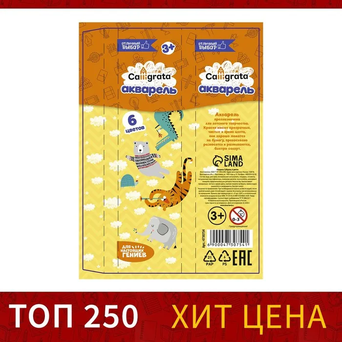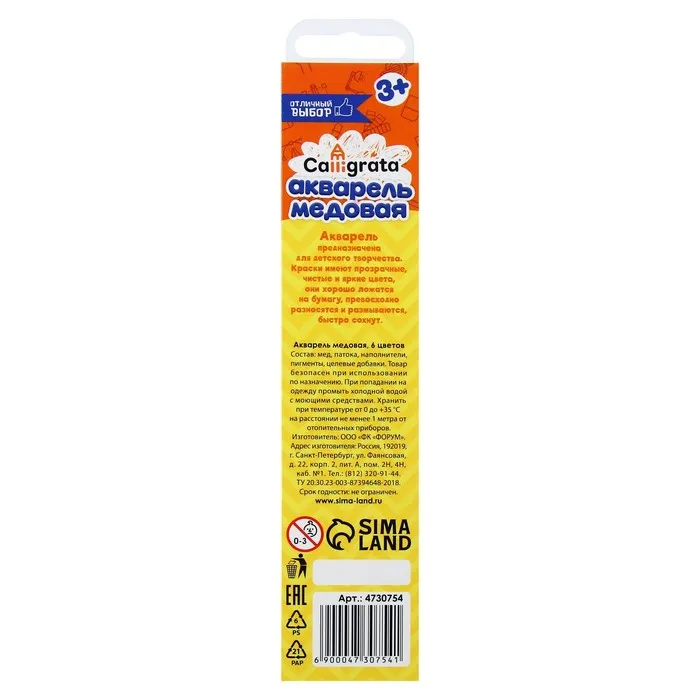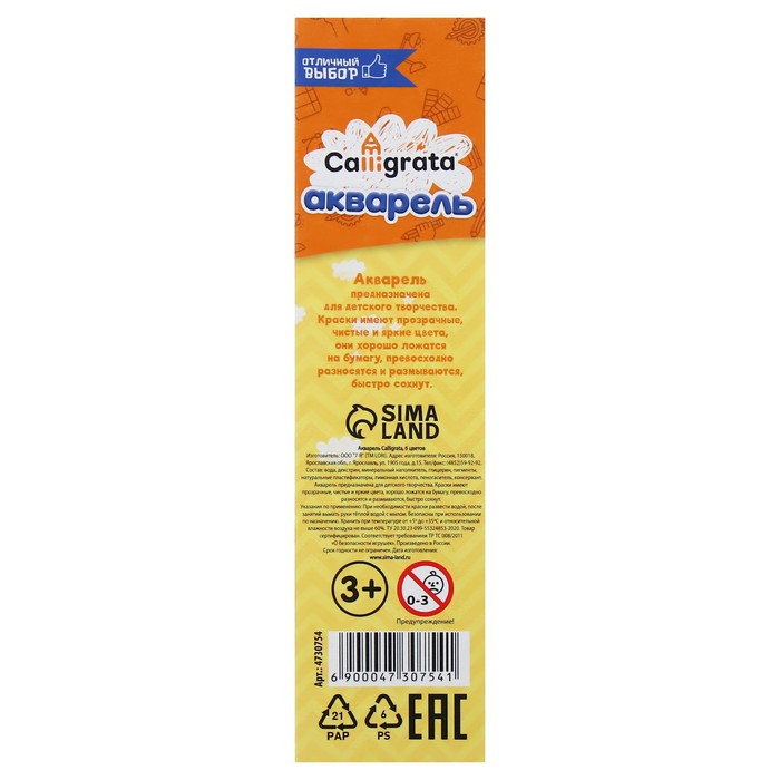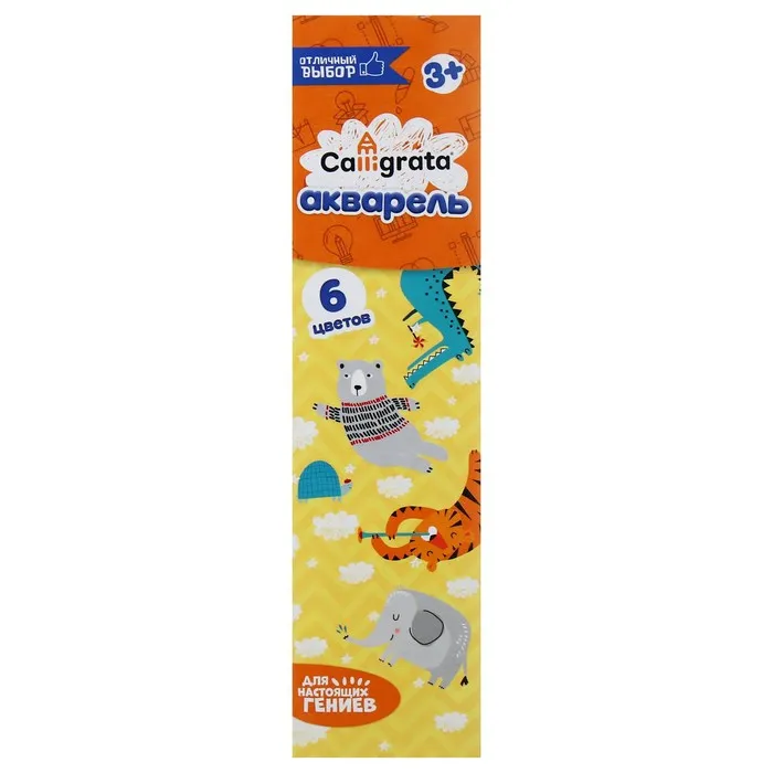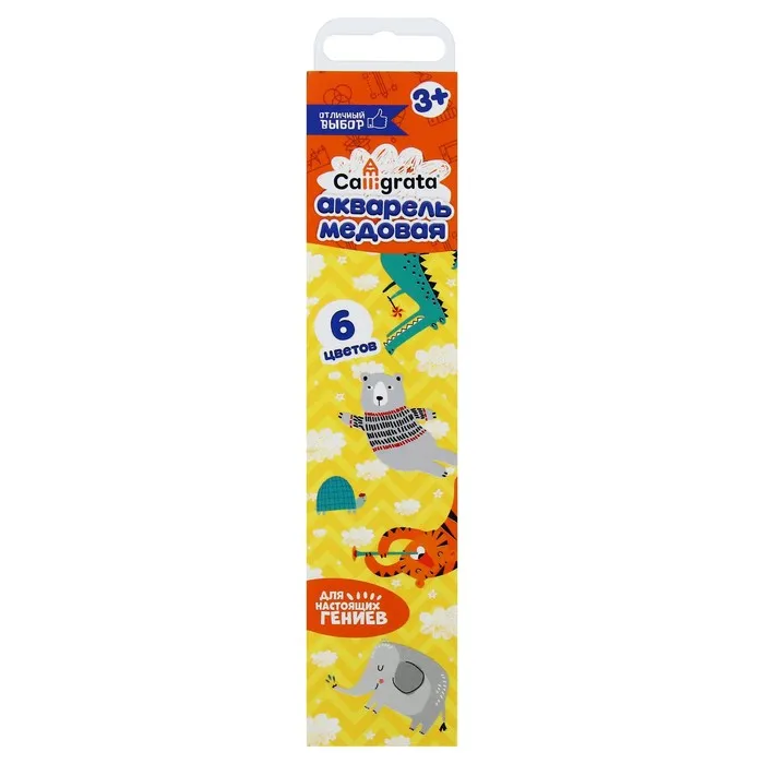 Медовая акварель Calligrata серии ""Отличный выбор"" разработана с учетом рекомендаций педагогов. Идеально подходит для занятий рисованием в детском саду, школе и дома. Яркие, чистые цвета развивают фантазию и интерес к творчеству. Акварель легко смывается с рук. 6 натуральных природных цветов акварели отлично смешиваются между собой и обеспечивают однородное окрашивание. Краски быстро высыхают и не портятся со временем. Безопасны для детей, нетоксичны. Выпускаются в картонном пенале с отделением для кисточки. Упаковка обладает компактными размерами и легким весом.