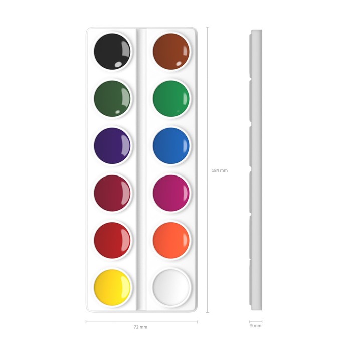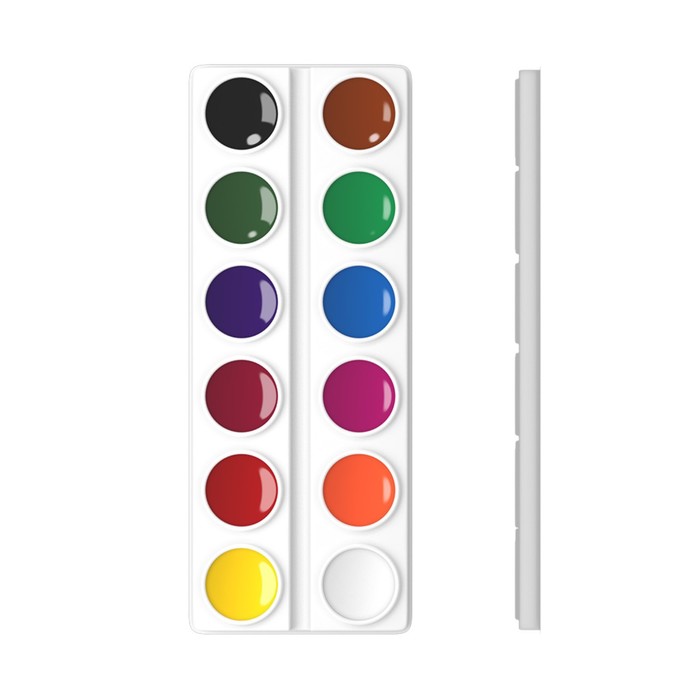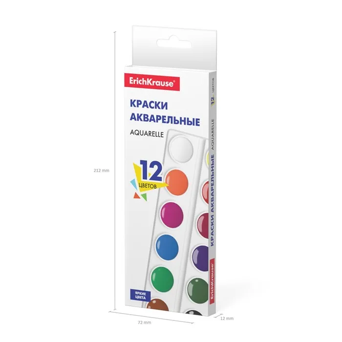 Акварель ErichKrause, 12 цветов, без кисти, мягкий пластик, картонная коробка, европодвес (эконом упаковка) — Характеристики
