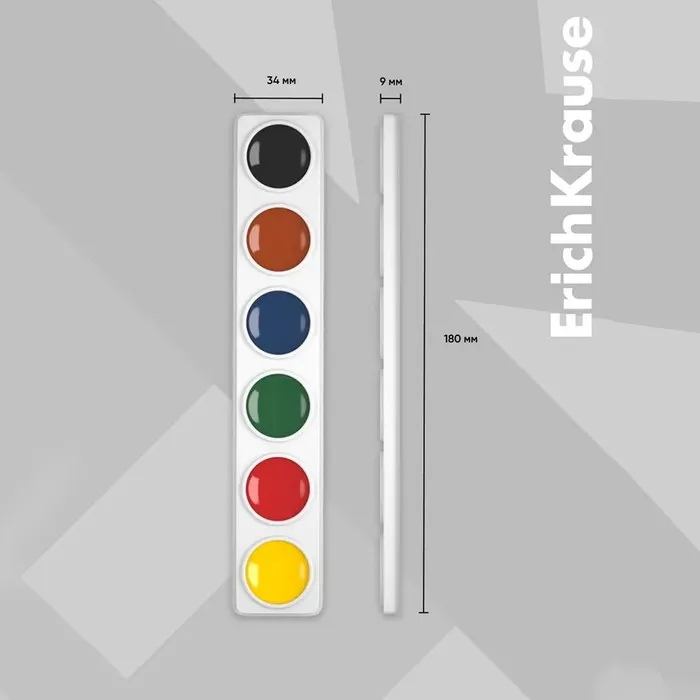 Акварель ErichKrause, 6 цветов, без кисти, картон, европодвес (облегчённая упаковка) — Характеристики