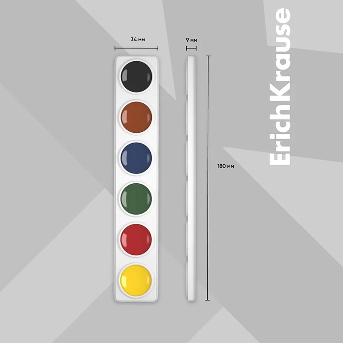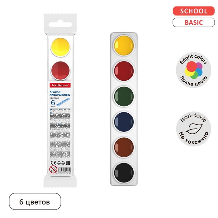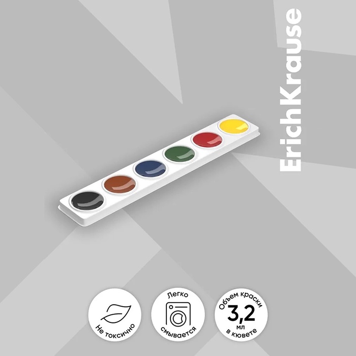 Акварель ErichKrause, 6 цветов, без кисти, мягкий пластик, экономичная упаковка, пакет с европодвесом — Характеристики