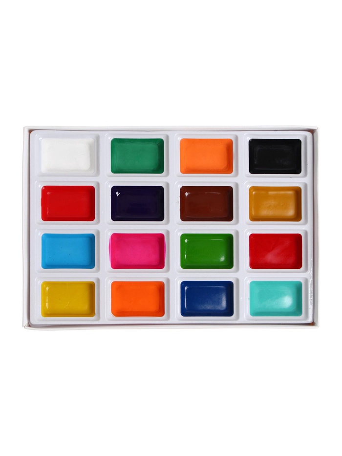 16 ярких насыщенных цветов отлично смешиваются между собой и позволяют создать множество оттенков, обеспечивают однородное окрашивание.Краски быстро высыхают и не портятся со временем.Безопасны для детей, нетоксичны.Выпускаются в пластиковом пенале с прозрачной крышкой, квадратной формой кювет.Упаковка обладает компактными размерами и легким весом.Краски могут приходить с выпавшими кюветами, потрескавшиеся, что не является браком, Трещина на акварели не является браком. Акварель трескается из-за испарения воды, которая была в составе краски. Чтобы восстановить рабочие свойства краски, необходимо восполнить нехватку жидкости.
