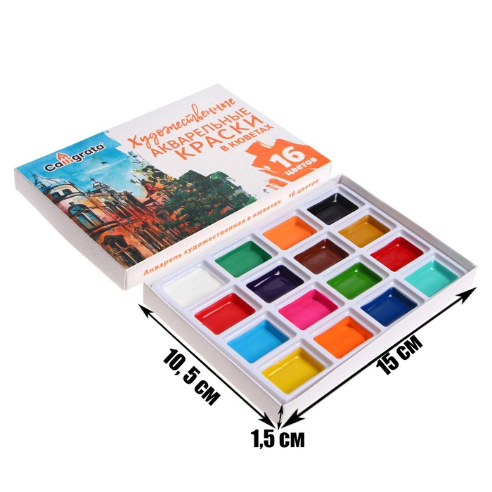 Акварель художественная в кюветах, 16 цветов — Характеристики